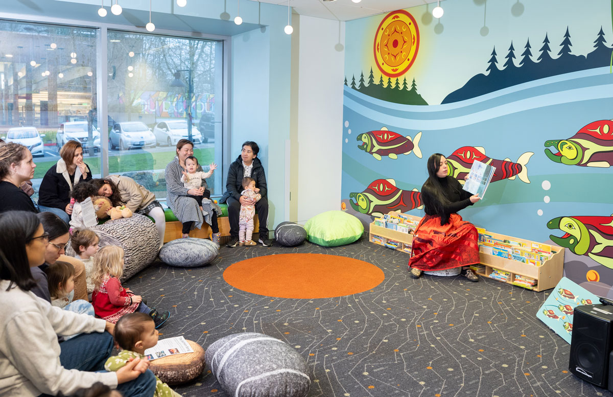 Featured artist, veteran, and Snoqualmie Tribe member Bethany Fackrell introduced her design and led the library in a special commemorative Story Time.